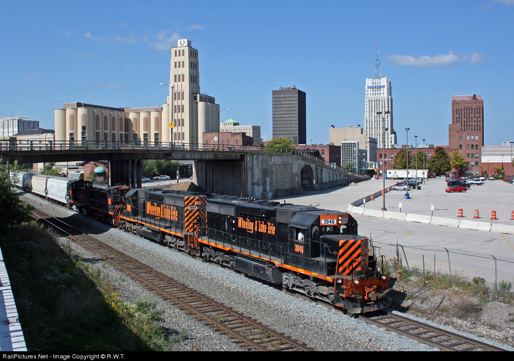 With the Akron skyline in the background, CSX train Z642, an ABC Railway run-through, rolls under the Park Street bridge, which will soon be torn down and replaced to make way for double stack clearance. Also of interest is Quaker Square (the tallest building with the "Q") which is currently being turned into college dorms.