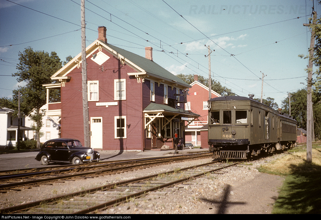 Express motor #502 was built ca. 1924, of wood construction on Taylor trucks. Its seen here at the Marieville depot, which appeared to also serve as housing for the operator/agent on the second-floor. M&SC was originally a GTW property. According to internet research, #504 was the only survivor preserved at the Seashore Trolley Museum in Kennebunkport, ME.