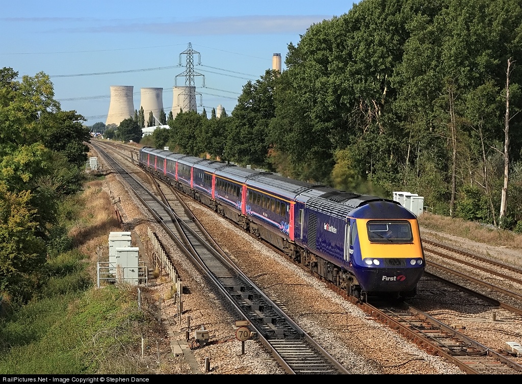The driver of 43037 gives the photographers waiting for D1015 a wave as it passes Didcot East Junction with an eastbound working. This location has changed comparatively little in the last 40 years. The trees have grown but without obscuring the tracks, there is now an extra set of ladder crossovers (mainly hidden behind the train), there are more lineside equipment cabinets, a superstore complex has been built on the right in the middle distance (thankfully that is now obscured from view), and the power station has an extra lowrise chimney; but despite the many livery changes over the years, HSTs have been everyday motive power here since 1976. All this is about to change, however. The bridge being used for this shot is due to be rebuilt within the next few months, probably rendering this location useless for photography, and electrification is to follow which will definitely do so.