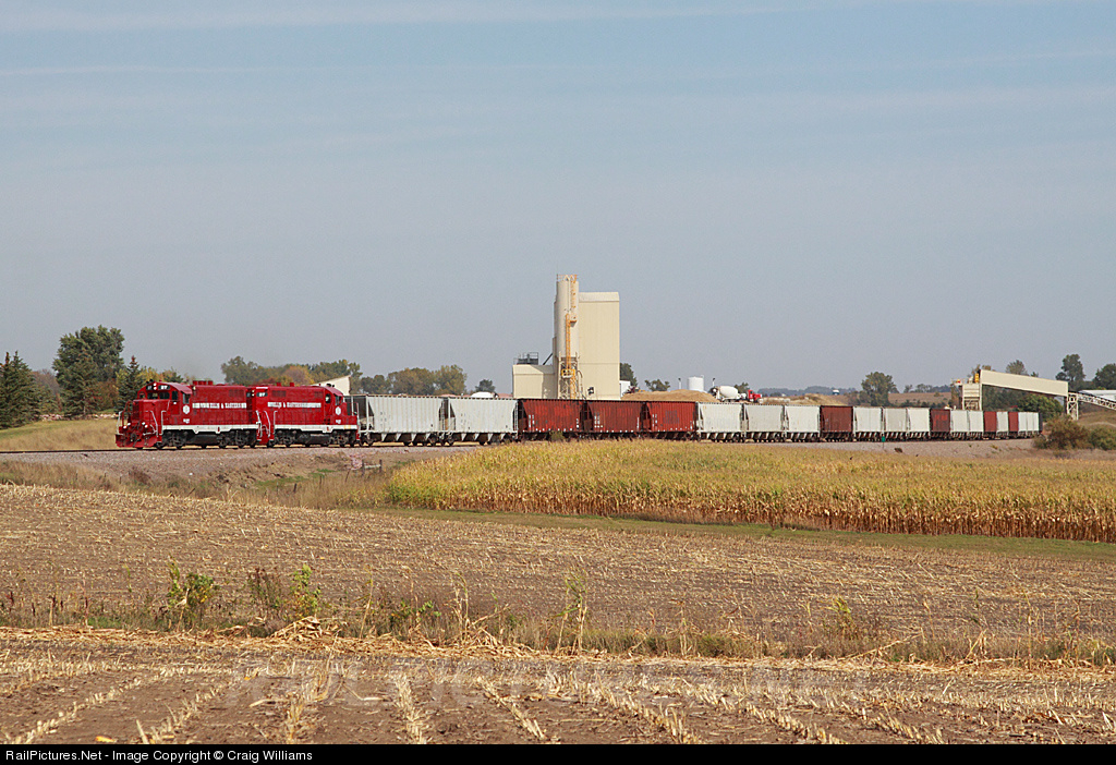 | The Ellis and Eastern has loaded their 22 car full of sand and now are heading back towards Sioux Falls, SD. The E&E uses BNSF trackage rights to gain access to this mine at Corson. Couple times a week the E&E makes a morning run out here to loadout. |