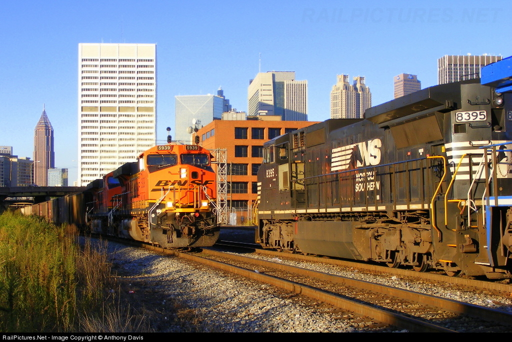 | Well Hello, Western Friend! BNSF 5939 passes NS 8395 at Spring with yet another Scherer Coal Train. NS 8395 is waiting for a fresh crew to take him into the yard after just coming up from the Atlanta South District. |