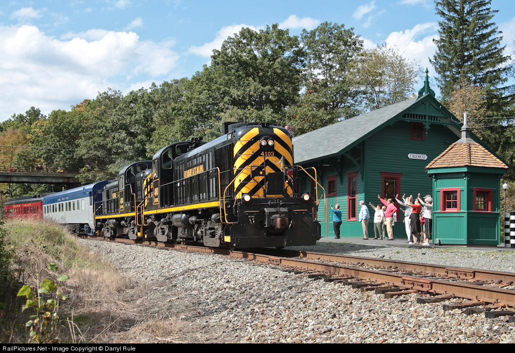 | Part of the group that chartered today's train watches as 4103 cruises by. After the RS3s run around the train at East Stroudsburg, the patrons on the train and the group following in a bus will swap and they will ride the train back to Scranton. |