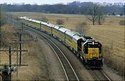 Kansas City Southern ran its vivid Southern Belle business train over Iowa Chicago & Eastern lines now operated by CP Rail. The ABA F9A's shine as they head eastbound and off the causeway between Sabula, Iowa and Savanna, Illinois on this former Milwaukee Road mainline between Chicago and Savanna, Illinois. The train is shown at Savanna, Illinois on Friday Oct. 2, 2009. STEVE SMEDLEY PHOTO