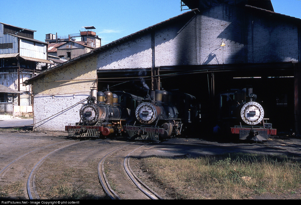 | 760mm gauge Baldwins 1327,1328 and 1329 stand outside the shed at Espartaco mill. They were built in 1911, 1915 and 1919 respectively. |