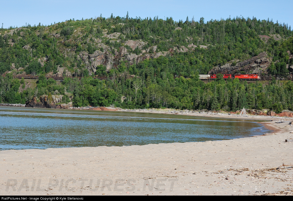 | While relaxing on the beach at Neys Provincial Park, I roll over grab my camera and take this shot of a CP CWR train making its way along the coast of Lake Superior. From shots like this, to shots of trains crossing the Little Pic River Bridge, Neys Provincial Park is truly one of the best railfan campgroupās around and a place every railfan should visit. |