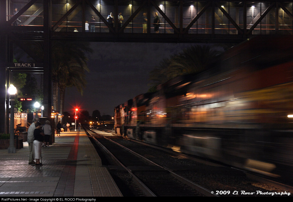 The Jump to Light Speed - An Eastbound container train led by BNSF #729 pulls out of the station in Fullerton California on its way to Barstow.