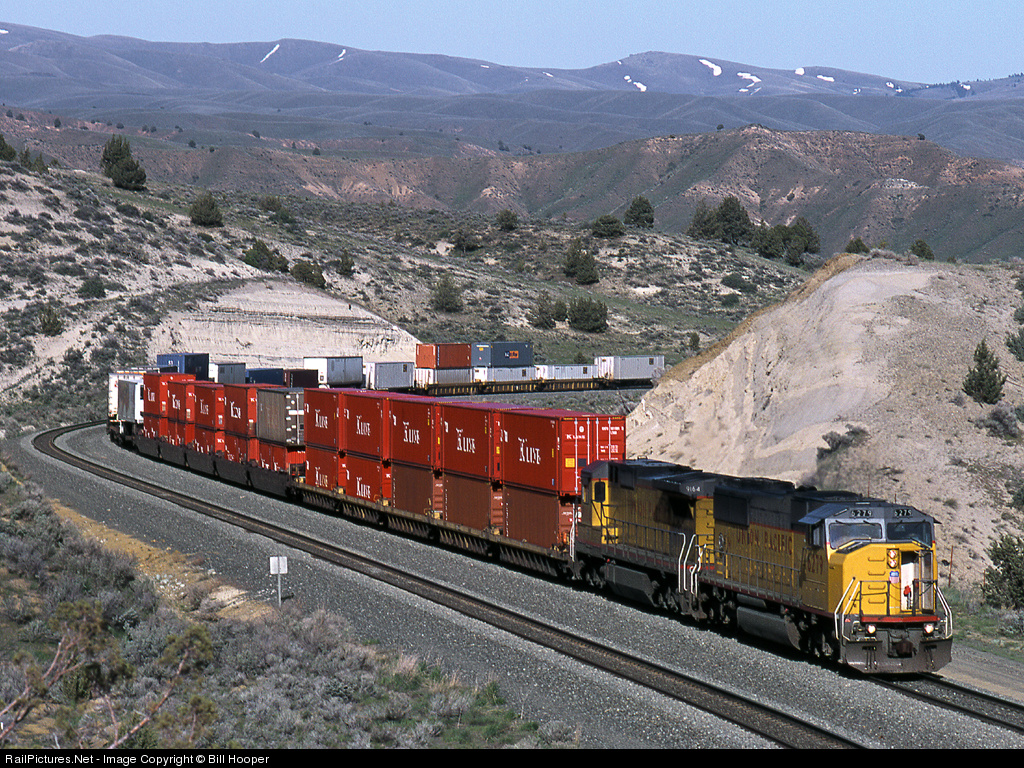 A westbound intermodal curves off the Durkee loop on the long climb out of the Snake River valley in Eastern Oregon