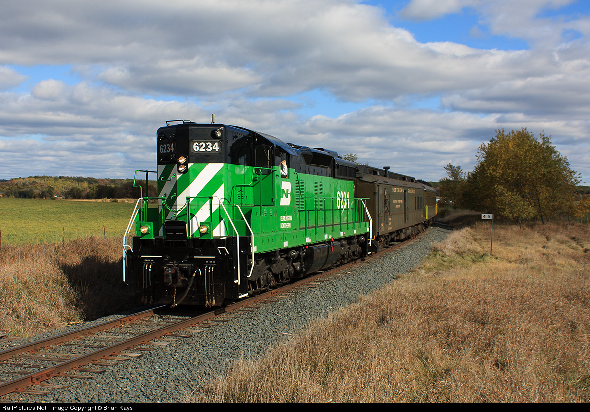 Osceola & St. Croix Valley's BN 6234 takes the 2:00 train from Dresser back to Osceola. This unit was busy all day taking people to and from the Dresser Depot at half an hour intervals.
