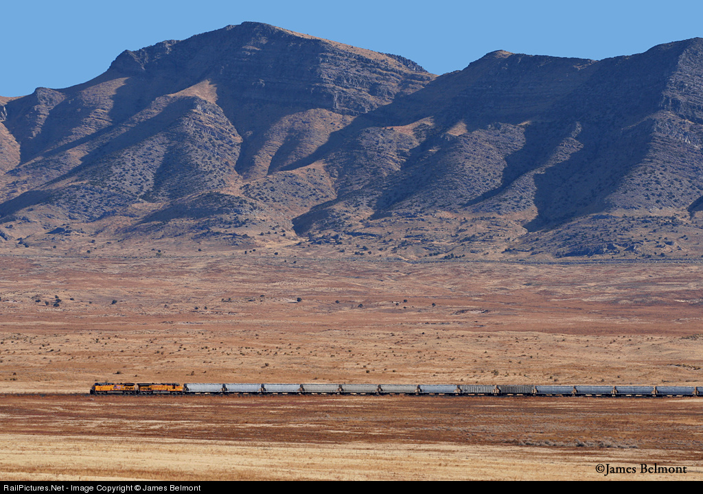 A 96 car Union Pacific grain train rambles west along the Cricket Mountains at Marblehead, Utah.
