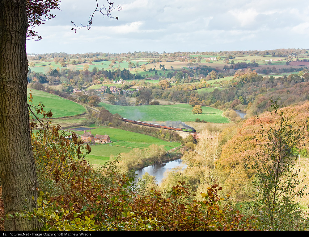 | One more Tornado shot from me as 60163 is viewed from the highest point of the Wyre Forest near Button Oak, Bewdley, which allows you to see the line crossing the River Severn right the way round to the reservoirs at Trimpley |