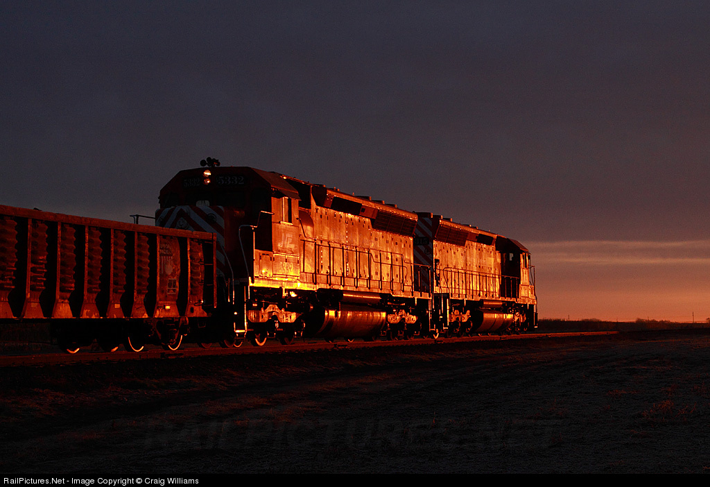 Mother nature provided a brief hint of light at sunrise before heading under clouds for a few hours. The Nebraska Central's Oconee Local heads towards Columbus, NE, with cars for the Union Pacific. These 2 SD 45's are ex-Rio Grande.