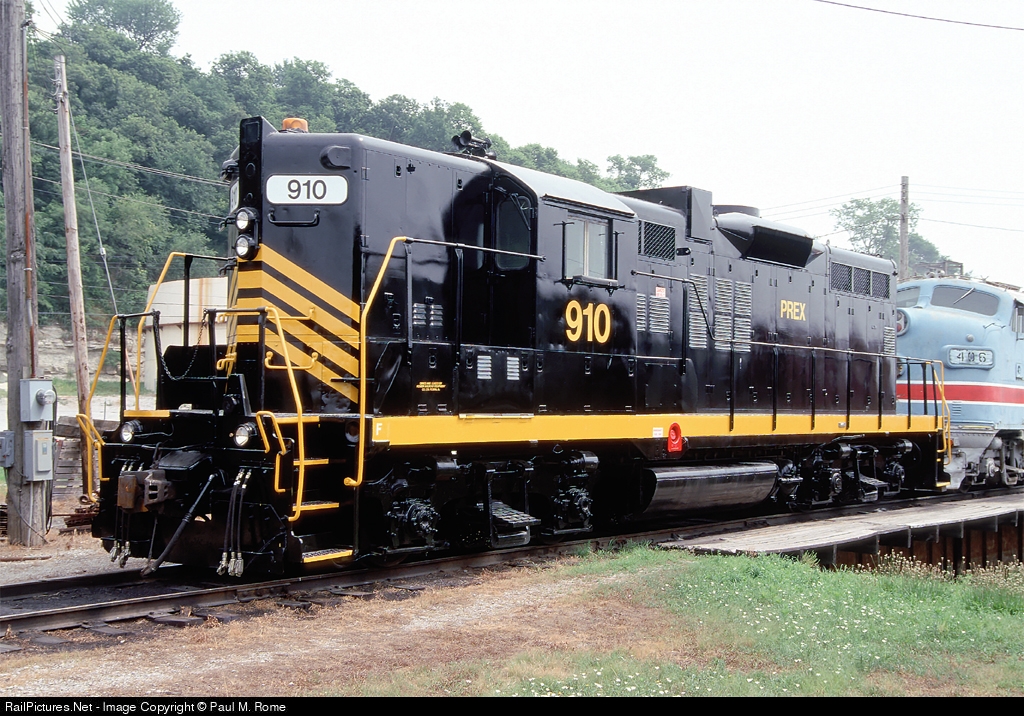 Pioneer Railroad Equipment company's newly rebuilt, ex SP GP9, sits at PREX's Keokuk Junction Railway yard in Keokuk Iowa. (ex CNW F7A, still in St.Louis Chain of Rocks paint sits behind the 910).