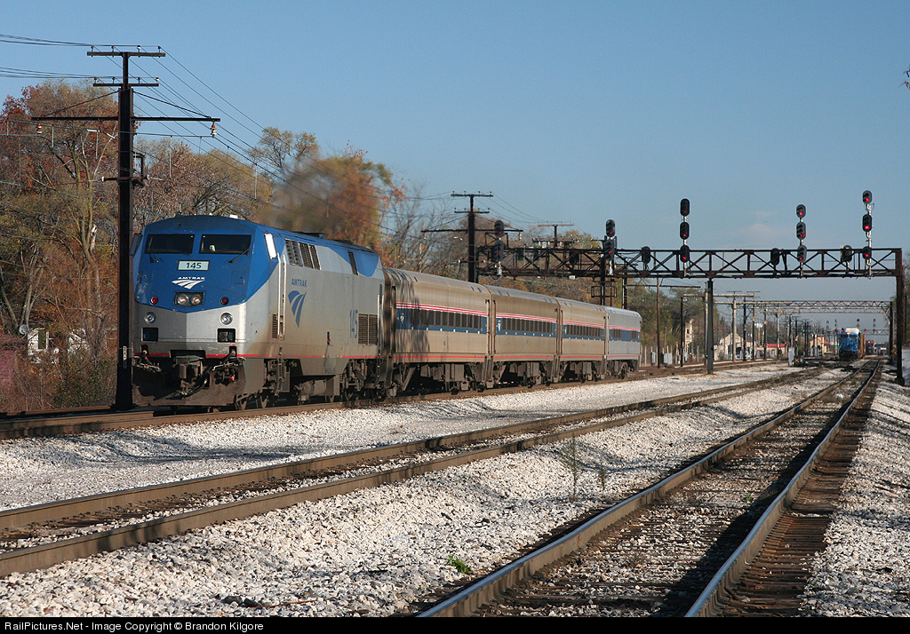 RailPictures.Net Photo: AMTK 145 Amtrak GE P42DC at Homewood, Illinois by Brandon Kilgore