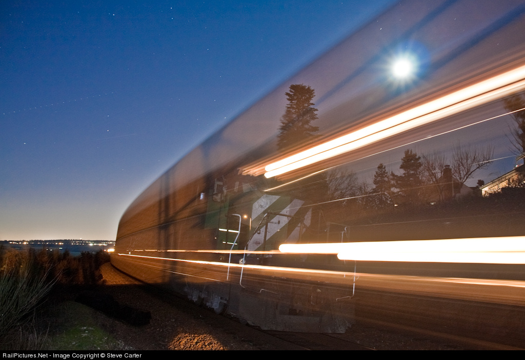 Full Moon over Steilacoom! A flash freezes the image of the locomotive in the exposure on a nice clear starry night.