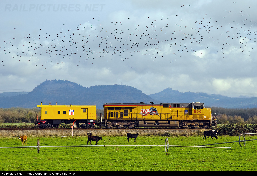 On Veteran's Day, flanger SPMW 329, an old veteran of the Southern Pacific, made the journey from Albina yard to Eugene. Here at Shedd siding, UP 5291 and SPMW 329 will soon meet Amtrak #14. SPMW 329 was rebuilt in October 2009 at the Albina car shop in Portland, Oregon.