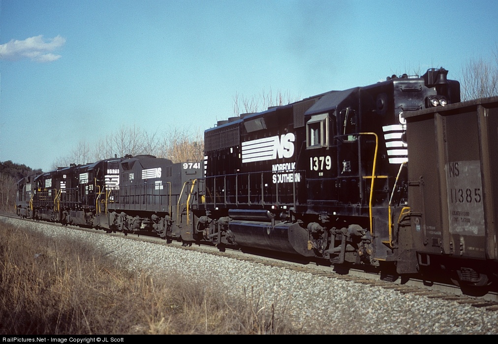 Pusher consist 976 shoves coal train Y64 south on Starkey Hill - and a great consist it was: 1379 (GP40), 9741 (road slug), 3979 and 40?? (B23-7), and 2729 (GP38). I can still hear the EMDs "screaming like a banshee" and the GEs barking and chugging hard! Today these trains run with three big six-axles on the point and two pushing.
