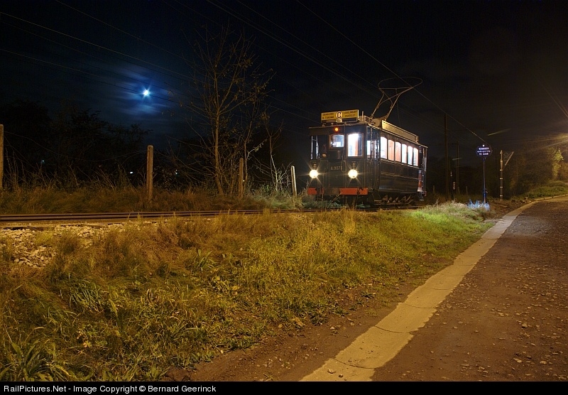 | An Old Lady of 1901 still running once a year. this is a typical layout of belgian streetcar operation, railway, streetcar and street within 6m. See alsothe cast iron pole displaying the stop name.