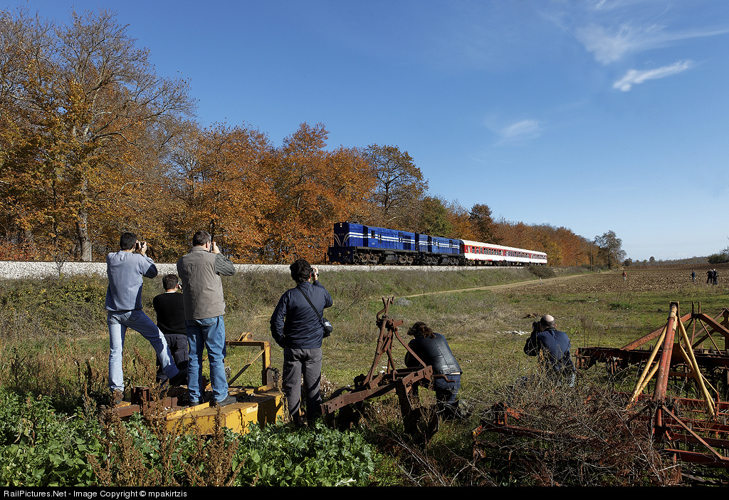 | Railfans in action, "shooting" the special scheme of two ALCO, used for the excursion of the Greek railfan forum AMNIZIA. |