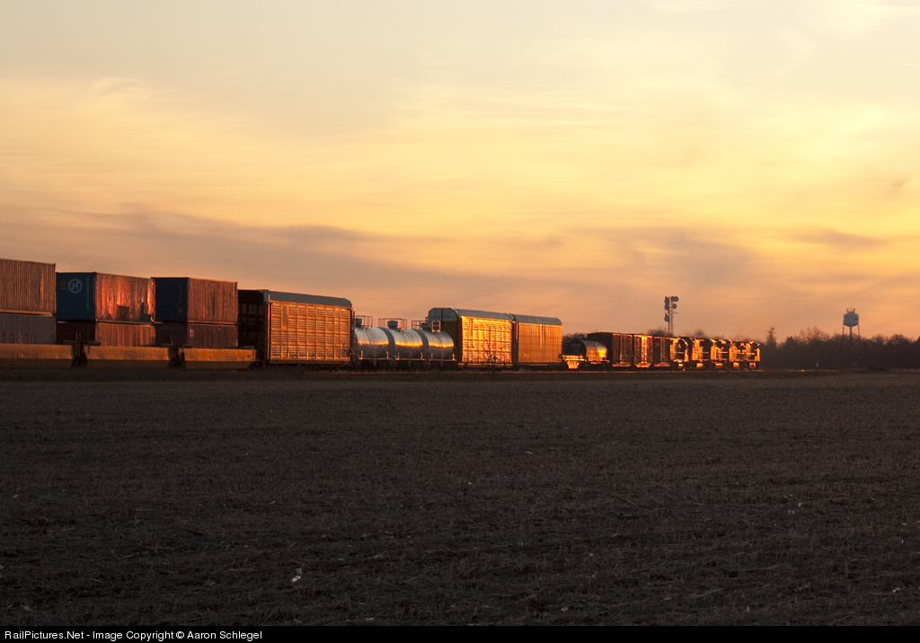 Train 149 rolls West into the setting sun with 3 Bad Orderd units. CN 2670 & IC 1024 provide the power on this warm December evening.