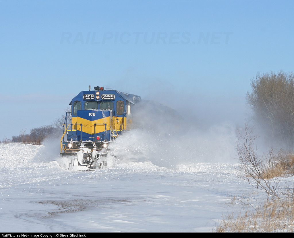 It doesn't look like it, but this is CP's Holiday train. It was towed backwards from a wye at Mona, near Lyle, Minn., to Mason City since there is not a wye there and the train had to head east out of Mason City. ICE 6444 and 6436 are coupled to the observation car you can't see heading through a drift south of Plymouth, Iowa.