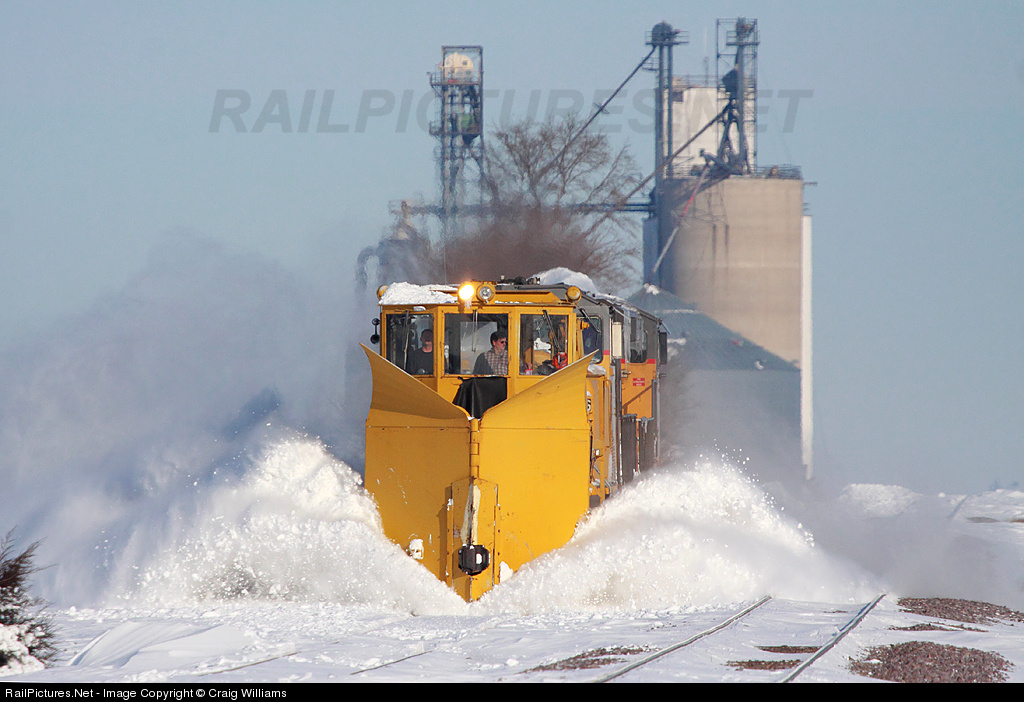 | A Jordan Spreader out of Mason City is nose plowing the sidings and mainline on the Spine Line. The crew is plowing the siding here at Buckeye and have a warrant to Nevada now and will blast out the south end. This crew plowed at 30 mph on the mainline. There wasn't alot of snow to plow with this 1st storm, but railroads are running plows already in Iowa, alittle unusual. |
