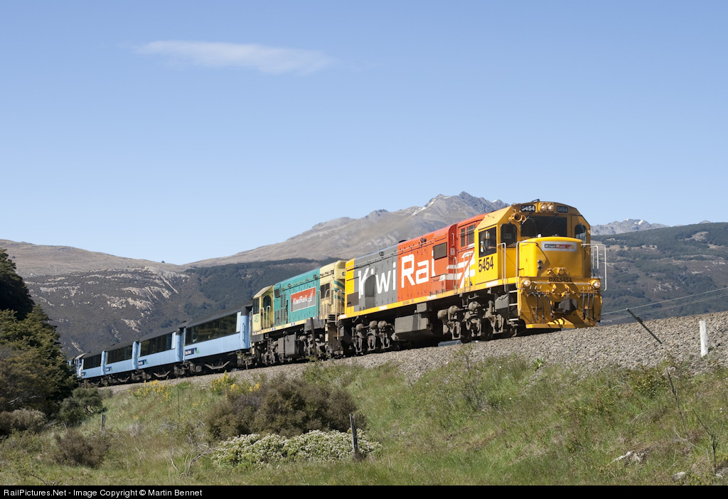 Trains on 3' 6" (1.067m) track from Whangarei to Bluff with virtually heritage rebuilt EMD and GE locomotives still the mainstay power. The network was privatized in 1990's and operated by Toll until 2008 when state owned KiwiRail was established.