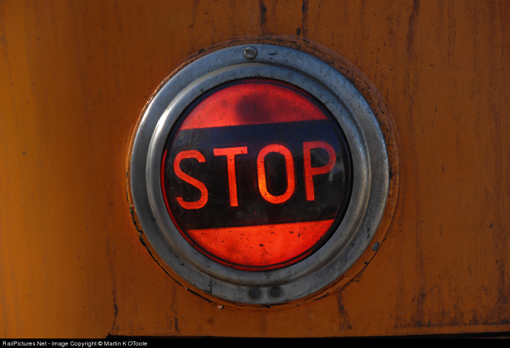 The classic "STOP" tail light still burns bright on this PCC car. Since the Mattapan line runs on its own right of way, the benefits of this detail are generally lost. It's a testament to the street car origins of the design.