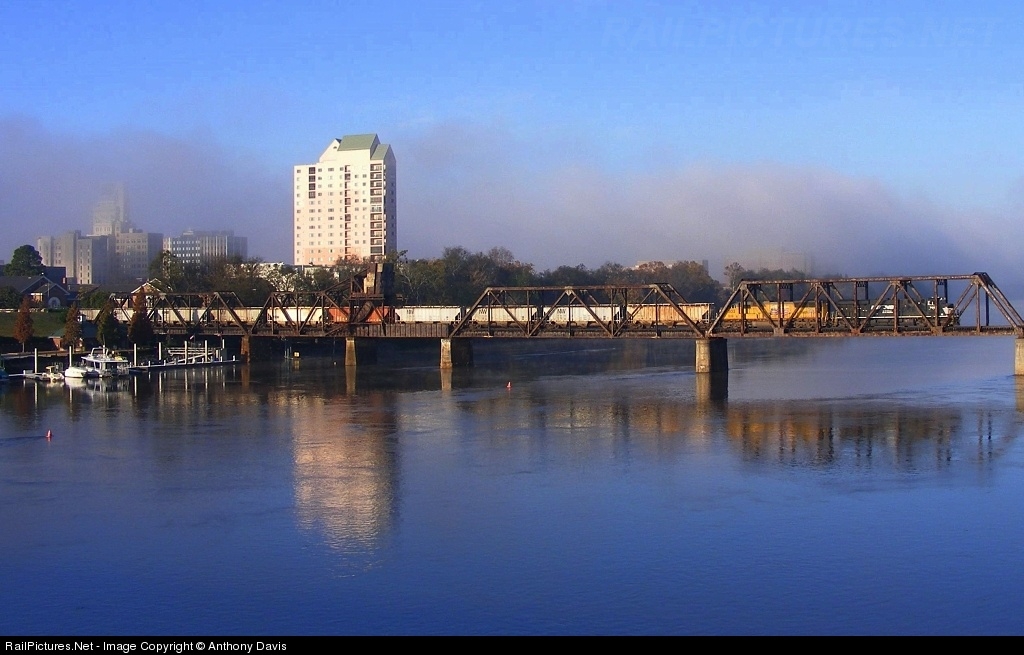 | Like Something from a Dream! My Best Shot of 2009! NS 156 crosses the Savannah River Drawbridge just after tackling 6th Street with an Uncle Pete trailing. I didn't realize until I was editing the photo that the fog is lifting in the background giving the photo somewhat of a very neat effect. You can actually see the Augusta Skyline still covered by a little leftover fog. Note: The Drawbridge is no longer operational and this shot was taken off the Jefferson Davis/ 5th Street Bridge that was just recently reopened to traffic once again. |