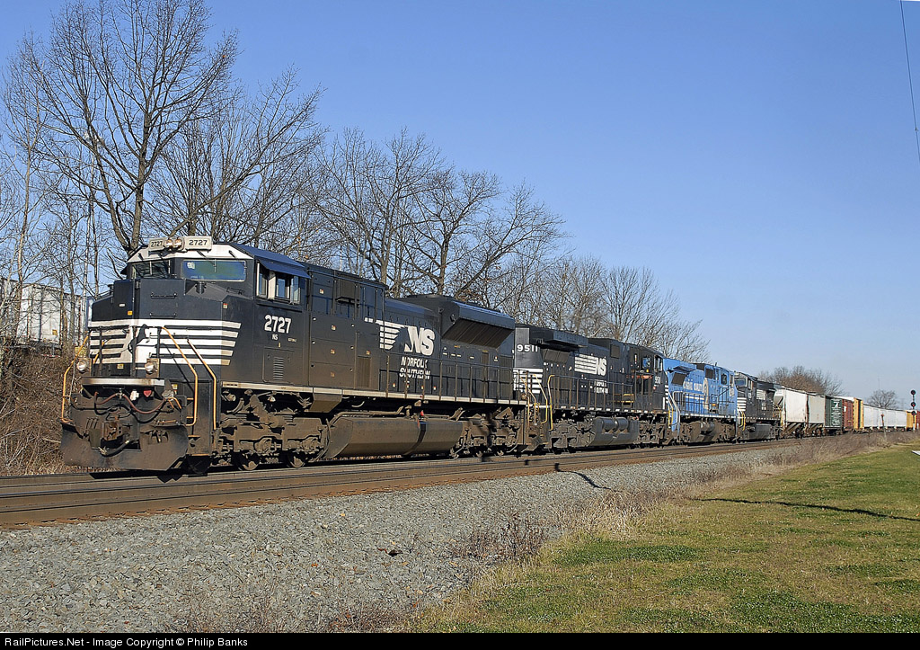 NS 2727, 9511, 8402, 9335, bring NS-34a, through West Laurel on Saturday December 12, 2009 @ 10:04am. Due to in-op cab signals the power would be spun & 9511 would soon be the leader. Shame the 8402 was dead in tow with the 9335 otherwise the 8402 would have made a great leader
