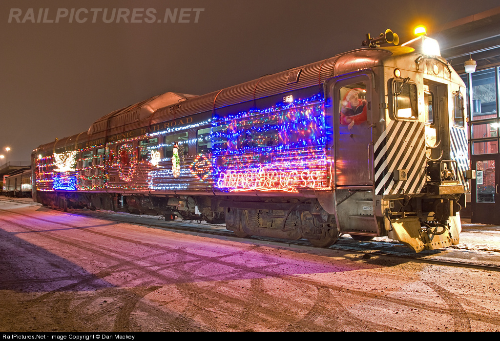 The North Shore Scenic's Budd Car decked out in holiday lighting makes it's final run for 2009 picking up the last group of happy children for their return trip to Santa's Courtyard.