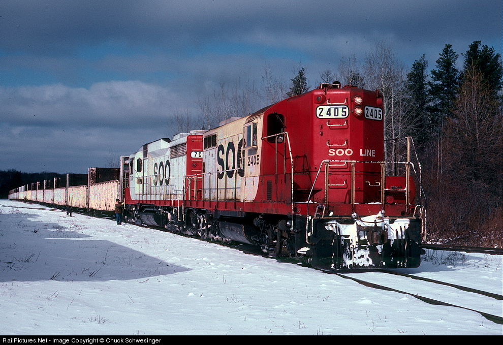 RailPictures.Net Photo: Soo 2405 Soo Line EMD GP9 at Trout Lake, Michigan by Chuck Schwesinger