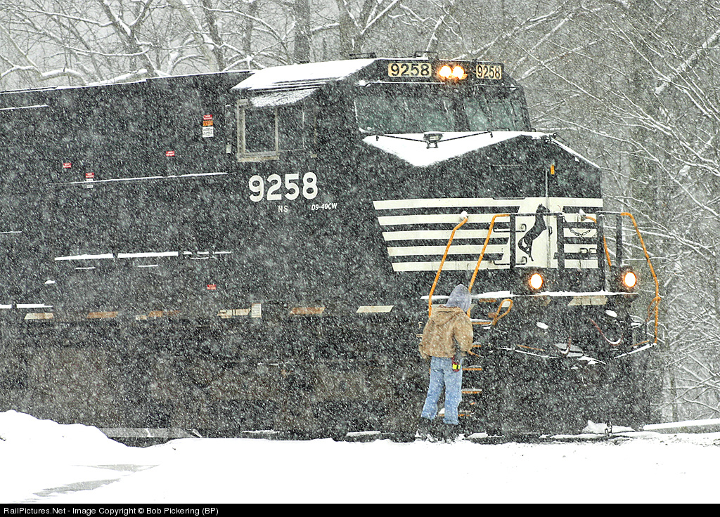 | NS 61A struggling up Duncan Hill in the 2004 Ohio Valley Snowstorm as a crew member prepares to protect the crossing. This was the second part of a forced double of the hill in the heavy 2-3 inch per hour snow that was accompanied by thunder and lightning in some parts of the region. NS 61A was fighting up the hill with pushers and stalled. This forced NS to double the hill. Here the motors have just returned for the 2nd part of the train while the snow hammers down. A Christmas Present I got in 2004 was being there. Merry Christmas to everyone at RP.net |