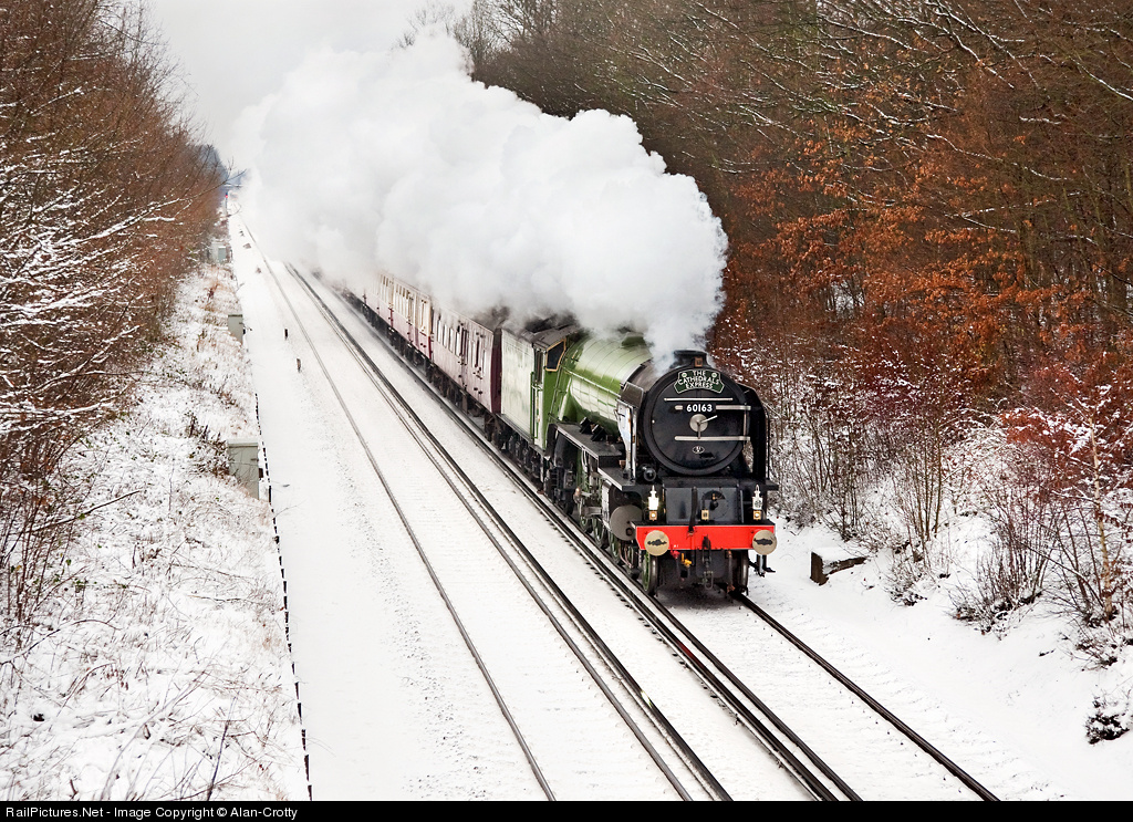 | The world's newest main line steam locomotive, Tornado is seen working a Christmas lunch special in a very snowy Kent. The snow had caused chaos on the electrified lines in the South of England and very few trains operated. Tornado ran pretty much to time throughout the trip, afterall there was nothing to get in the way! That evening a dinner train operated over a slightly different route. As the train was being made ready to depart from London Victoria the locomotive's owners saw a number of stranded Kent commuters on the platforms and offered them a lift home, see this link for a report http://www.thenorthernecho.co.uk/news/4820530.Tornado_to_the_rescue/ . Seasons greetings from England. |
