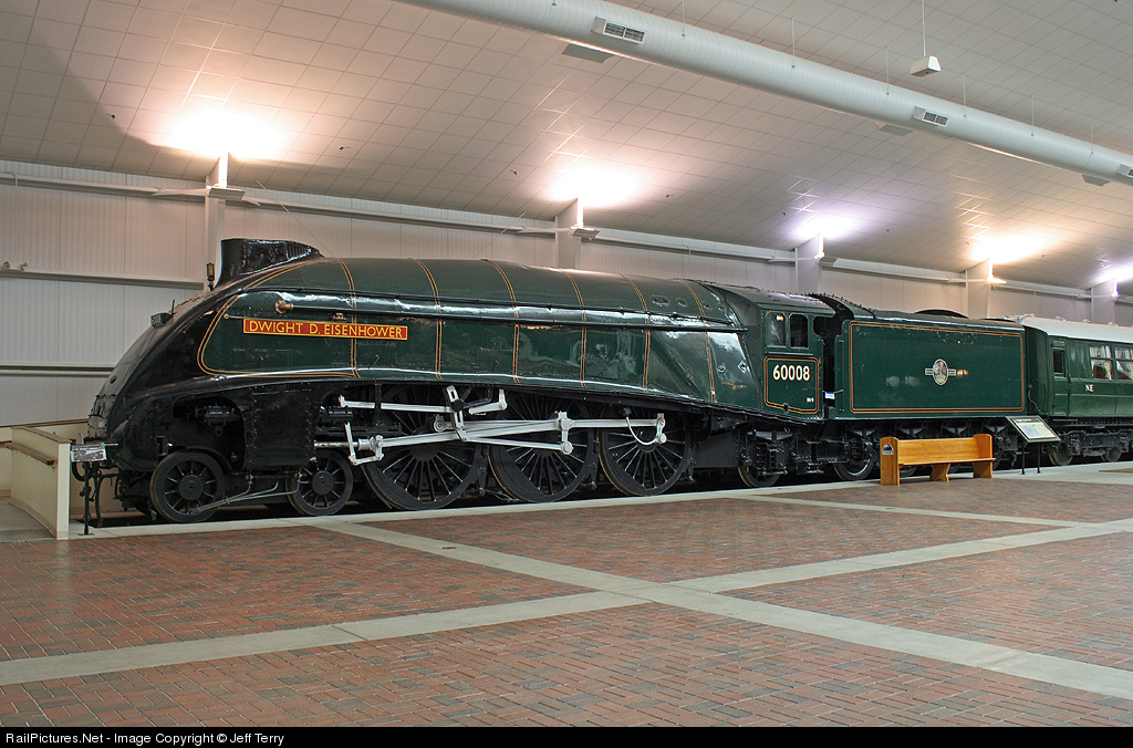 Pardon me, is this Kings Cross? A4 "Streak" No. 60008 is a long, long way from the LNER's old East Coast Main Line out of London - it's currently displayed at the National Railroad Museum in Green Bay, Wisconsin. Built as the LNER 4496 "Golden Shuttle," it was renamed after WWII to honor Eisenhower. It currently wears its British Railways livery and number, 60008. The museum is the only place in the United States were you can view British main-line steam power.