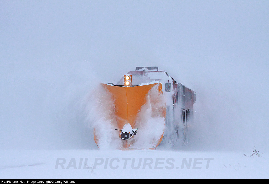 After cutting off their train at Remsen, the Sioux City, IA, to Ft Dodge, IA, local blast thru the snow drifts on Remsen Hill, near MP 472. This job is the 1st train since 12/24, alot of snow and blowning since then has the line closed, but today both L578/L579 having wedge plows things would be opened for business again.