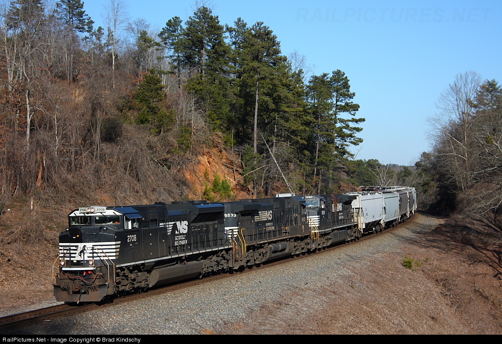 | NS 51Q rolls through the piedmont of Northeast Georgia with an empty chicken feed train from Baldwin, GA to Montpelier, OH. |