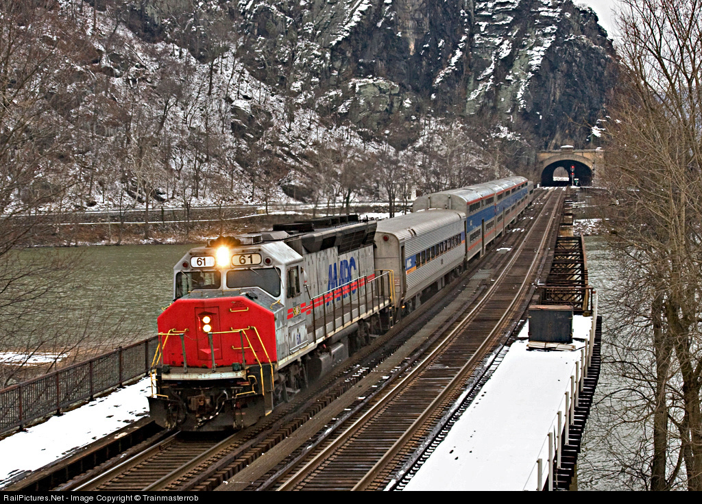 Operators view from HF Tower. Normally P871 runs on Friday's only to Brunswick, Maryland, from Washington, DC, but today being a holiday the train made a special run to Martinsburg, West Virginia. This made it possible to photograph a Marc train in daylight here in Harpers Ferry since typically the trains run in the dark this time of year here.