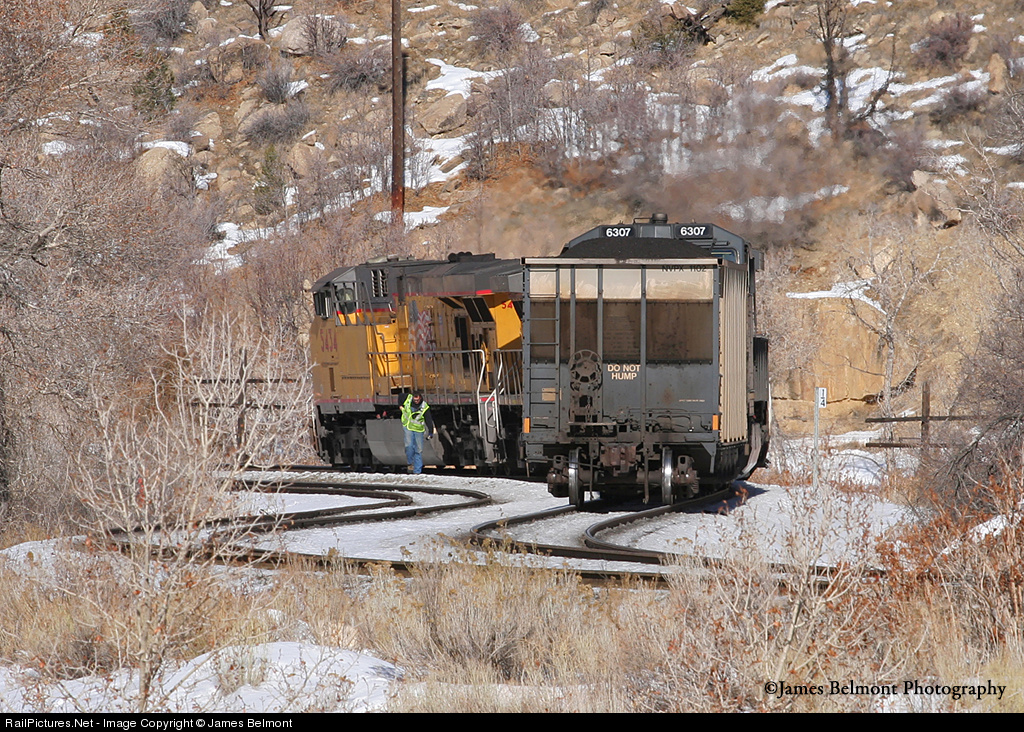 Thanks to some very cold weather conditions, a Utah Railway Wildcat, UT to Moapa, NV coal train has broken in two at milepost 634.25, near Lynn in Price Canyon. By the time the 101 car train had come to a stop on the 2.3% grade, the head end power and the first coal hopper were separated from the balance of the train by a few hundred feet. In this image, the head end rolls east around a curve toward the separated train to inspect the damage. After a crewman replaced the broken knuckle, the CUWMAJ-08 resumed it's journey west toward the Nevada Power generating station at Moapa.