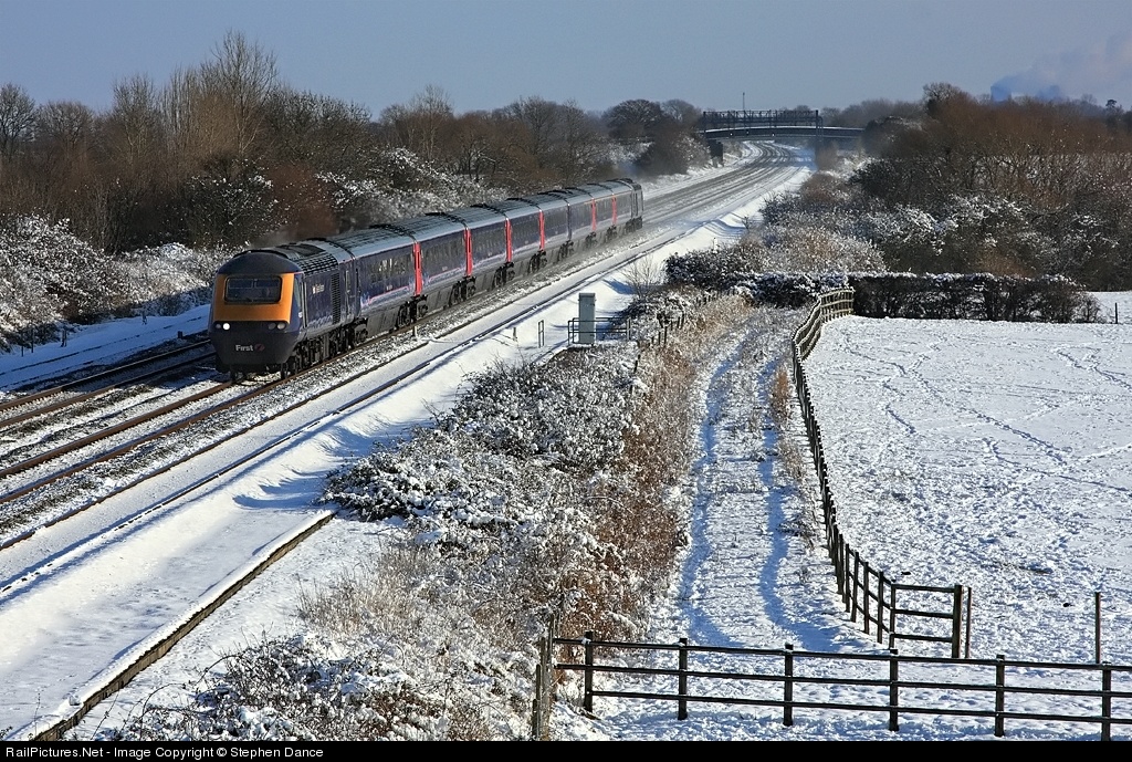 | The harshest winter weather since 1981/2 has finally reached southern England. Even here some rural spots have been down as low as zero degress farenheit (around -18C) overnight. An unidentified FGW HST set heads west towards Swindon at Circourt in perfect winter photography conditions |
