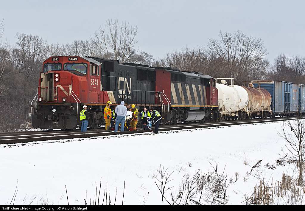 RailPictures.Net Photo: CN 5643, CN 5517 Canadian National Railway EMD SD75I at Battle Creek, Michigan by Aaron Schlegel