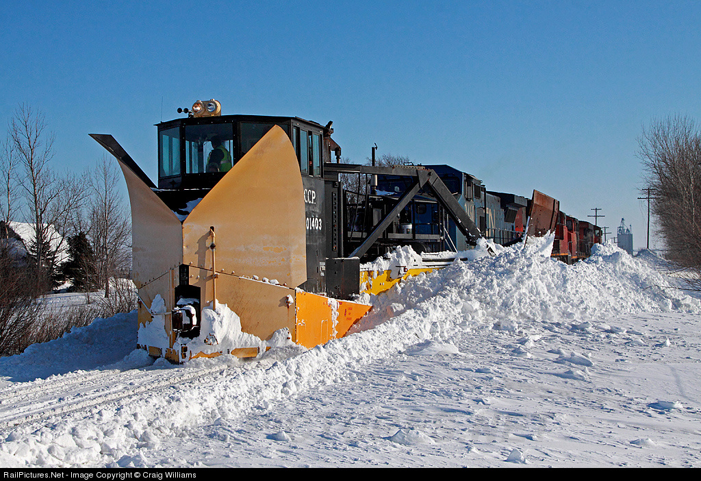 | Well it has been over 8 years since the CN has any type of plow equipment in Iowa other than wedge plows to fight winter. This year 2 Jordan Spreaders have been brought out to try and work the drifts back to help out all the bad power and stuck train problems. Here the Jordan works back drifts on the Waterloo Sub at MP 365, or 10 miles east of Ft Dodge. |