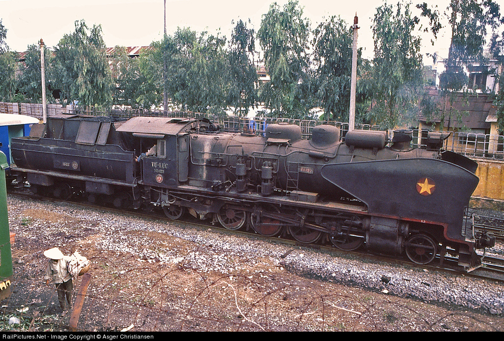 | In 1968 North Vietnam railways built this Mikado class steamer of parts from scapped engines originally delivered in 1953 by Société Alsacienne de Construction Mecaniques in France |