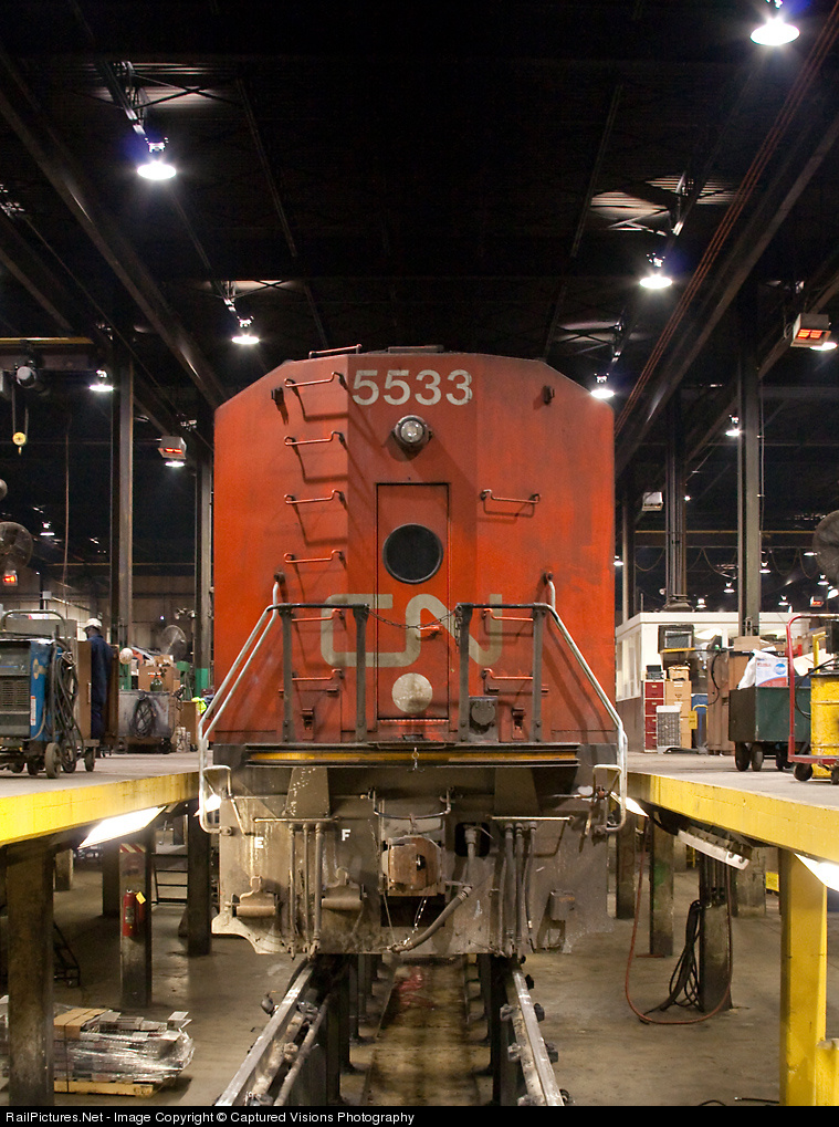 CN 5533 sits in inspection bay #5 at Homewood.