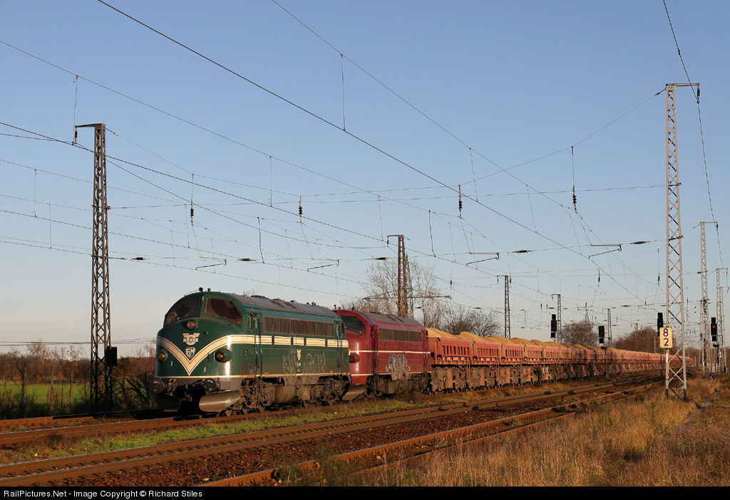 | Eicholz Rail's Nohabs 1131 and 1143 haul bogie hoppers loaded with sand westbound through Saarmund. This was taken at the time economic recession was starting to kick in in Europe, and the Berliner Aussenring was apparently less busy than usual for freight. |