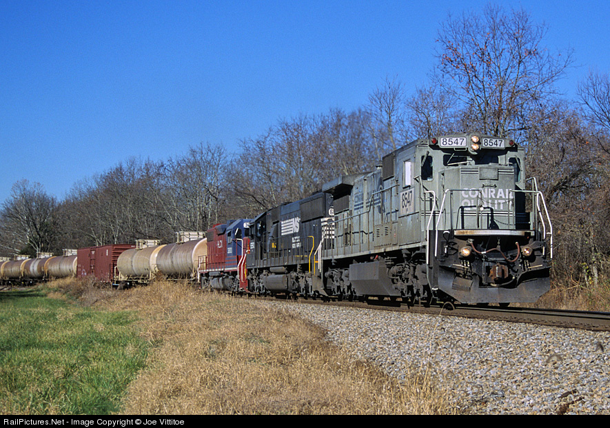 A rare C32-8 leads NS 111 east from Louisville as it heads for Danville and points south.NS 8547 was the former Conrail 6616 and later became NS 8462 before being retired.