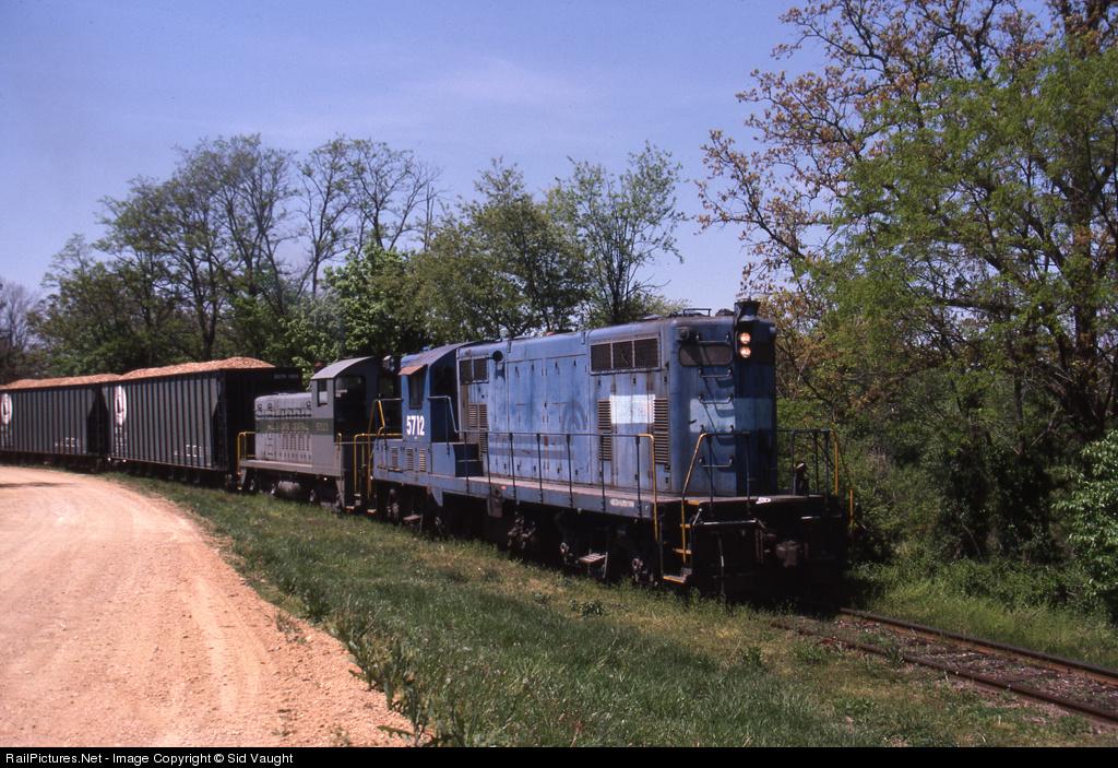| This real hard scrapple shortline railroading in the 80s. The ex CR unit is leading a fully painted Bellefonte Central unit. Paint jobs are expensive. This railroad is really rural and actually goes through Grinder's Switch, made famous by Minnie Pearl. |