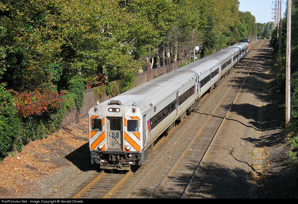 | Comet III Cab no. 5007 (since retired) leads a six car train south through Deal on the North Jersey Coast Line. Weeks after this photo was taken, the Comet III Cab Cars were removed from service, with the Comet III Trailers being retired shortly thereafter. |