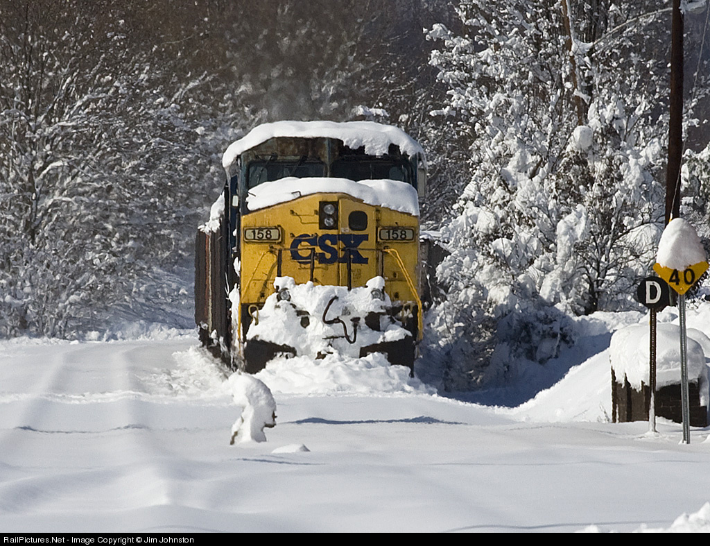 | Following the Blizzard of 2010, a loaded coal train sits on the mainline track 1 looking more like an abandoned car on the roadway. Located just west of the Brunswick Station. |