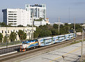 Southbound Tri-Rail train P619 accelerates out of the West Palm Beach station on its journey to Miami.
