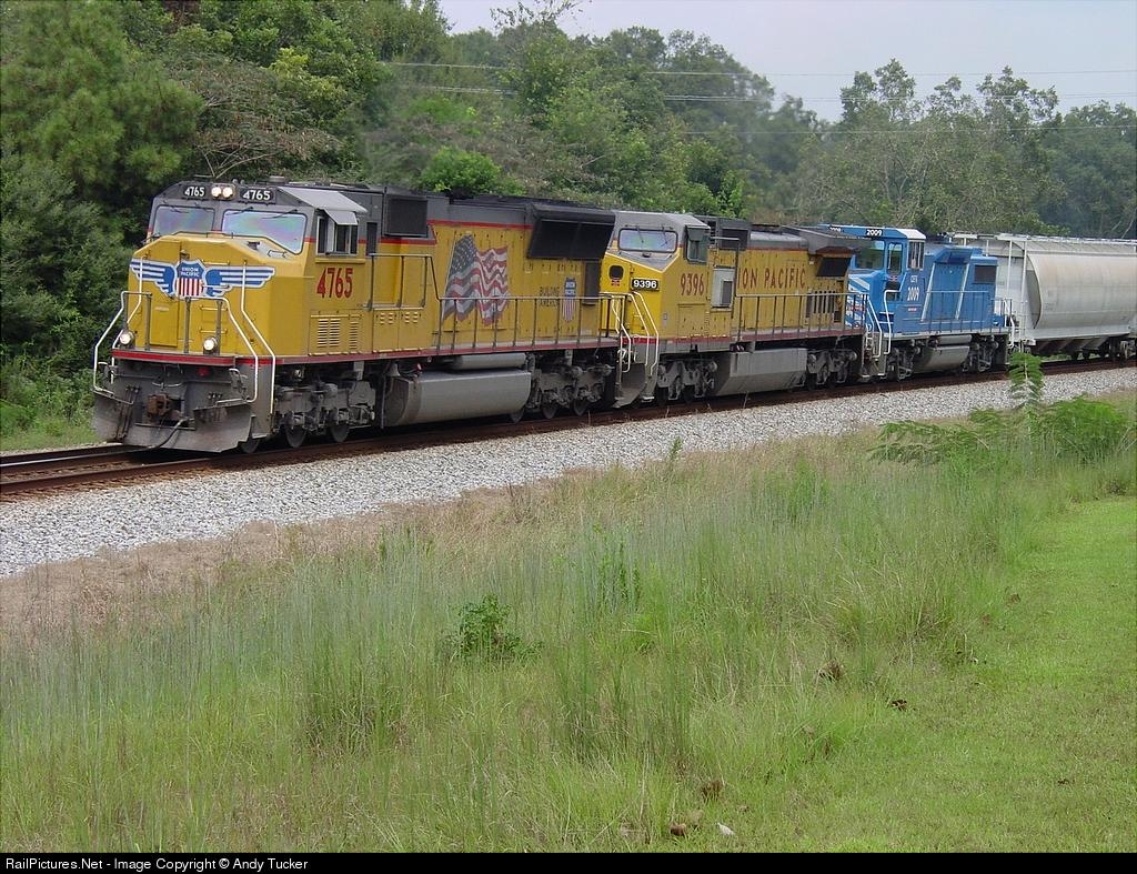 UP 4765 has the UP 9396 and CEFX 2009 in tow on train 393.